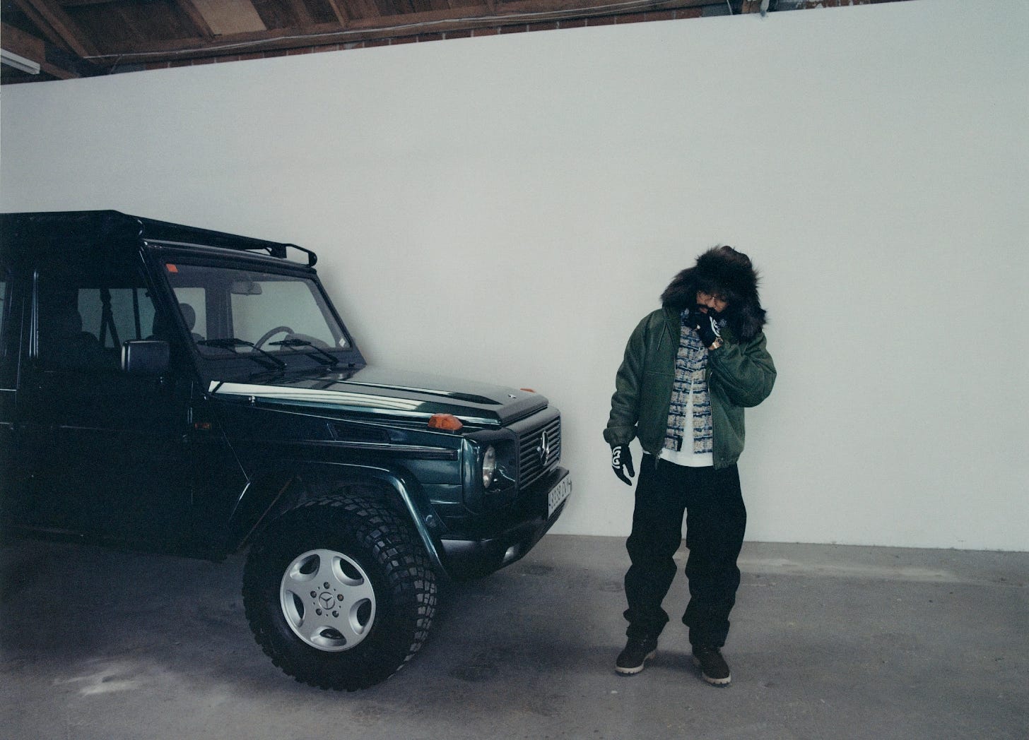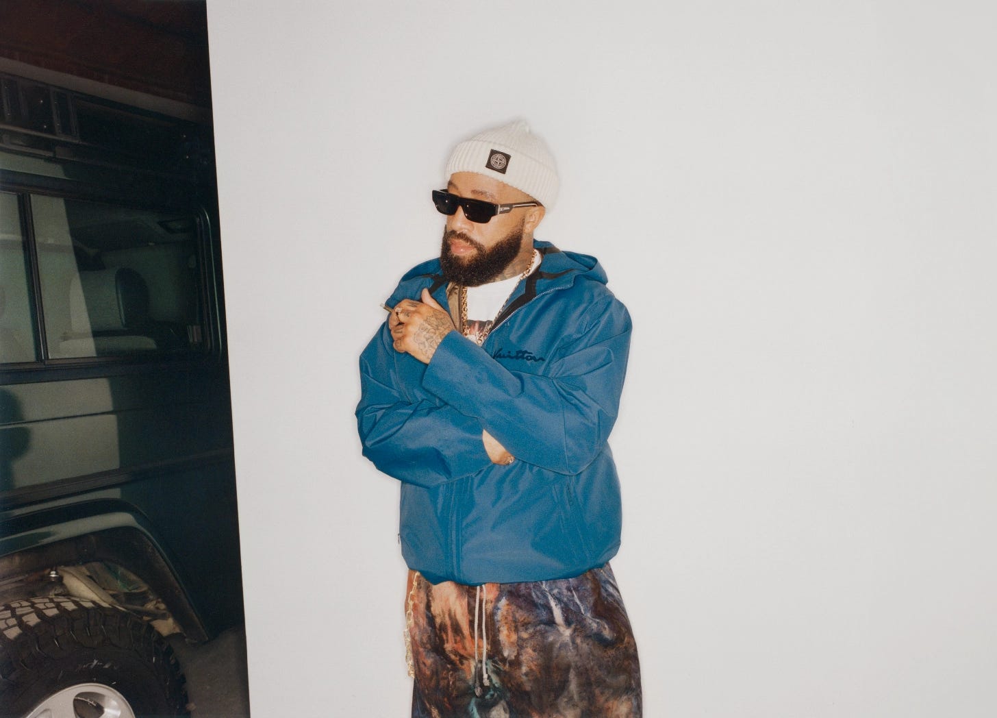 Larry June is sat in the shade, with a smoothie in one hand and his phone in the other. We are meeting in the communal garden of his luxury Los Angeles apartment building, and as he stands to greet me I spot a handful of fellow residents being guided through a morning yoga flow on an immaculately manicured lawn behind him. There’s a nice cool breeze, it smells of fresh cut grass, and I want to live here. This all feels very Larry. Short of there also being a Porsche 911 Carrera parked in the background, it’s about as on-brand of an introduction to the man as you could imagine.
